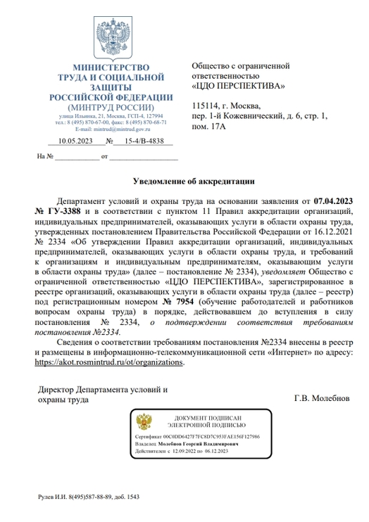 Проходили обучение ОТ по новым требованиям! Благодарим за четкость исполнения всех обязательств и грамотную консультативную поддержку.