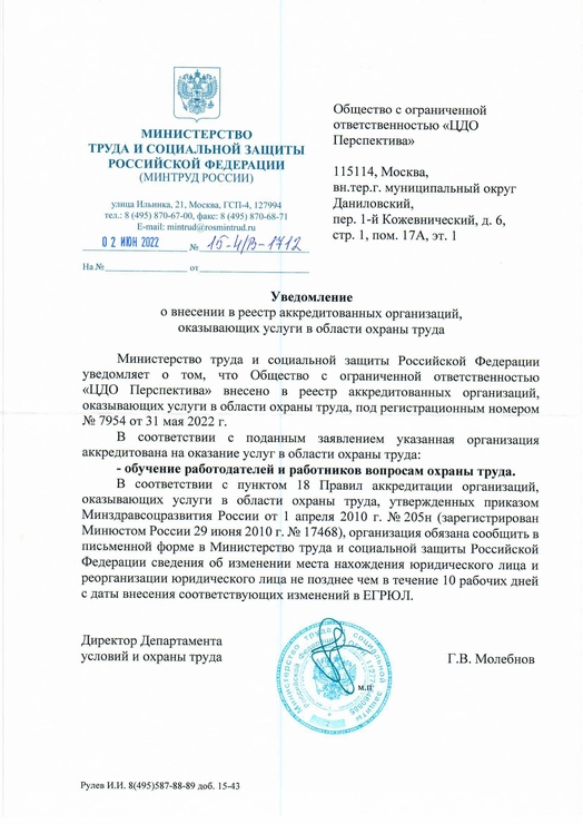 Обучились новым требованиям по ОТ в ЦДО «Перспектива». Великолепно изложен и предоставлен материал, благодарим за знания и оперативную поддержку и работу с нами!