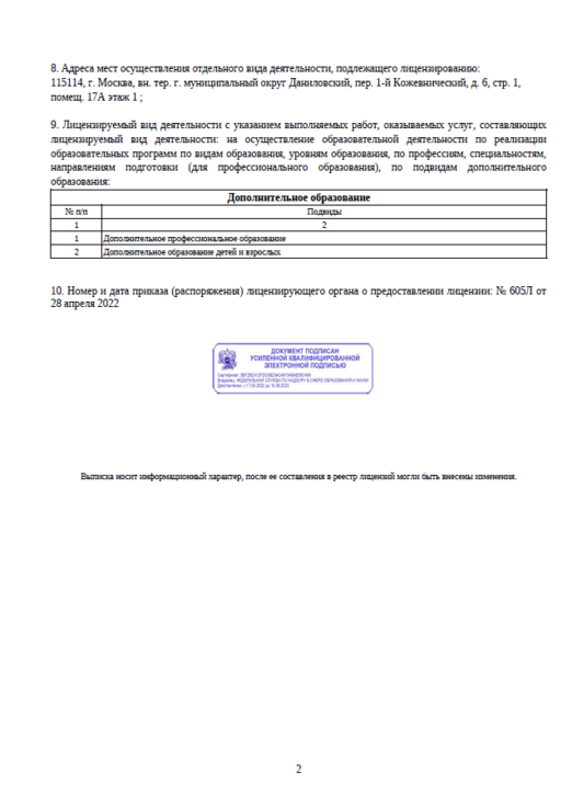 Образовательная деятельность ведется на основании государственной лицензии №042115 от 28 апреля 2022 г.